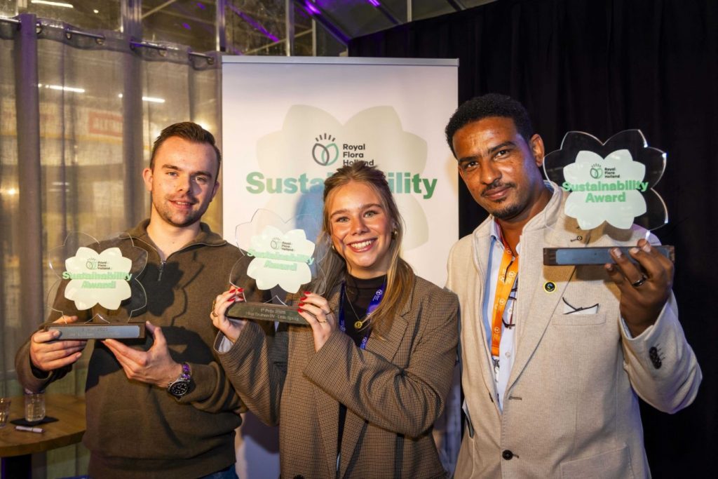 The Royal FloraHolland Sustainability Award puts a broader focus on sustainability, social commitment, responsible business ownership and technological innovation. The top three in the Sustainability Award receive not only a prestigious trophy, but also practical support and guidance in terms of communication to further develop their sustainable initiatives. The entries were judged by an independent jury of experts from science, retail, sustainability and sector organisations, including Koos Biesmeijer (Naturalis), Jacqueline Kroon (Glastuinbouw Nederland), Siem Haffmans (Partners for Innovation), Maartje Beem – Vullings (FruitMasters), Maarten Bánki (Royal FloraHolland) and Elise Wieringa (Intratuin). In addition to the jury’s assessment, the public vote also counted for 30% of the final score.