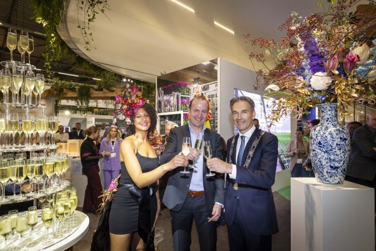 Adding to the celebratory atmosphere, Deputy Mayor Sven Spaargaren acknowledged Royal FloraHolland‘s role in uniting the floriculture community worldwide. In a gesture of appreciation, he presented CEO van Mechelen with a ceremonial gift. The event culminated in a toast marked by the pouring of champagne over a champagne tower, with guests joining in celebrating 25 years of success and looking forward to future achievements in the floriculture sector.